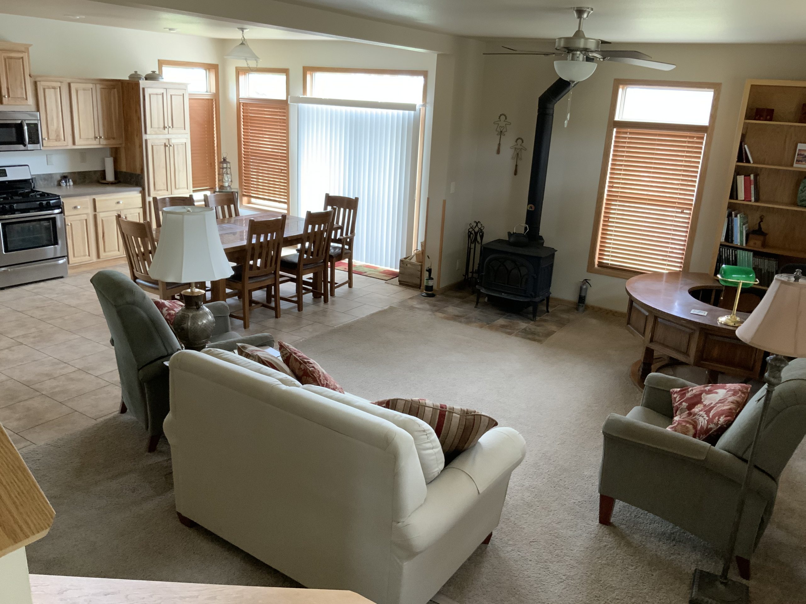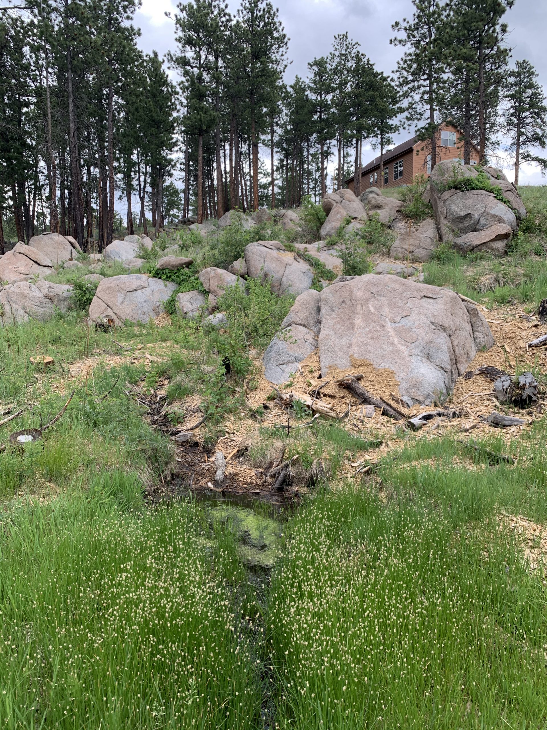 Sunset Sky Retreat sits majestically on 42 acres, amid mature ponderosa pine on land studded with giant lichen patterned boulders.
